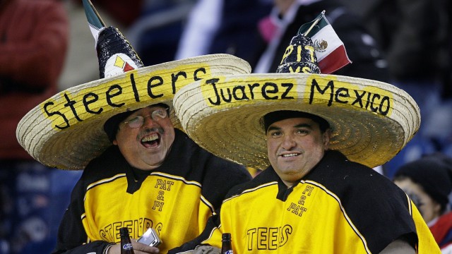 At the time, Dallas Cowboys (Las Vaqueritas de Dallas) and the Pittsburgh Steelers (Los Acereros de Pittsburgh) dominated coverage. With their relative proximity to the border, the Cowboys naturally picked up a strong following. But the Steelers’ blue-collar identity resonated with fans in Mexico City and Monterrey, Mexico’s big industrial town. On Sundays in Mexico City today, you can find bars full of Steelers fans waving “toallas terribles”.